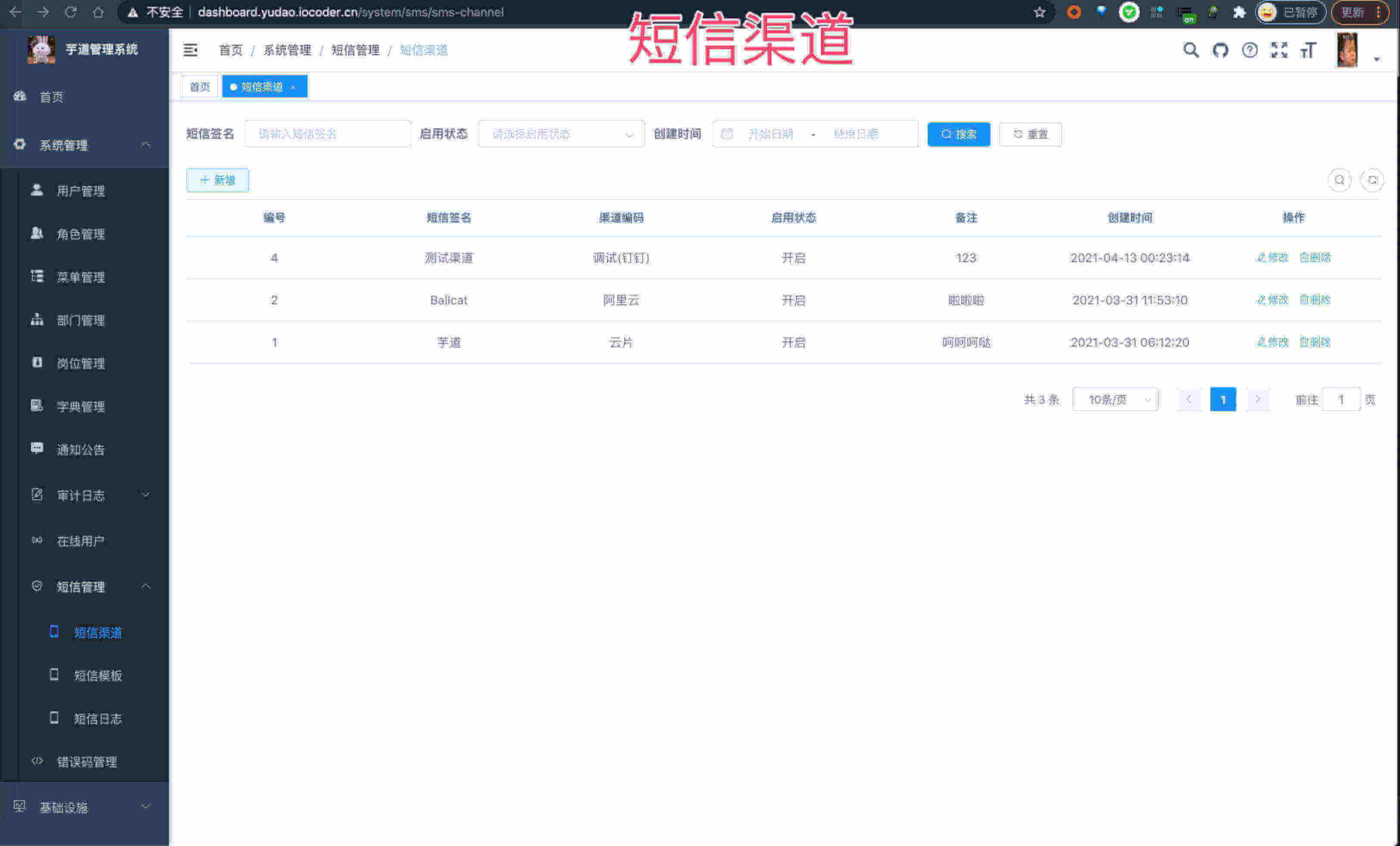 短信 短信渠道 短信模板 短信日志